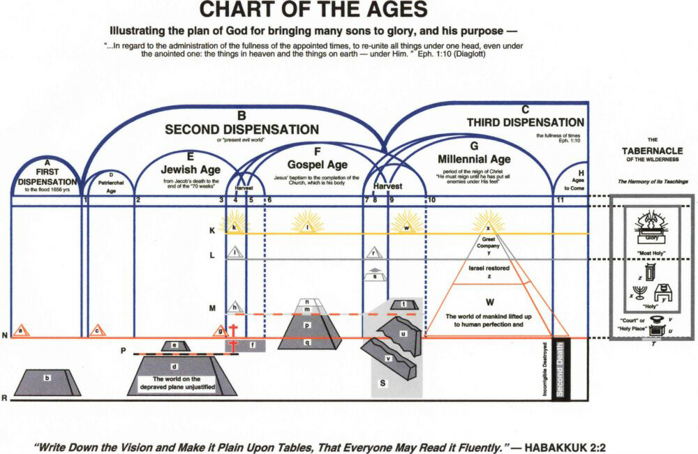 PICTURED ABOVE is a chart representing the plan of God for the world's salvation. By it we have sought to aid the mind, through the eye, in understanding something of the progressive character of God's plan, and the progressive steps which must be taken by all who ever attain the complete "change" from the human to the divine nature.